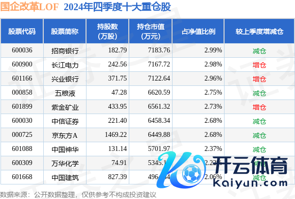 国企纠正LOF为指数型-股票基金,凭据最新一期基金季报披露,该基金财富竖立:股票占净值比94.45%,债券占净值比0.89%,现款占净值比4.55%。基金十大重仓股如下: